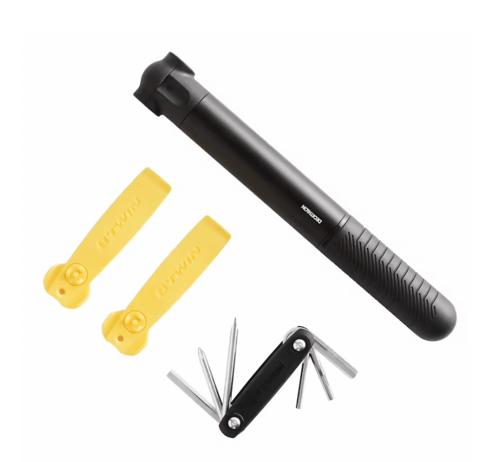 D’abord, être préparé à l’imprévu, le kit de survie du vélotafeur / cycliste, une pompe à main, des démontés pneus, des rustines, (voir une chambre à air de secours) et/ou une bombe anti-crevaison (j’y reviendrai).